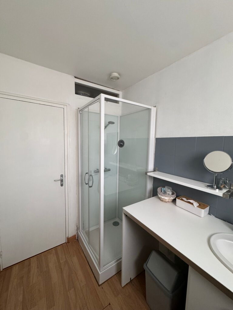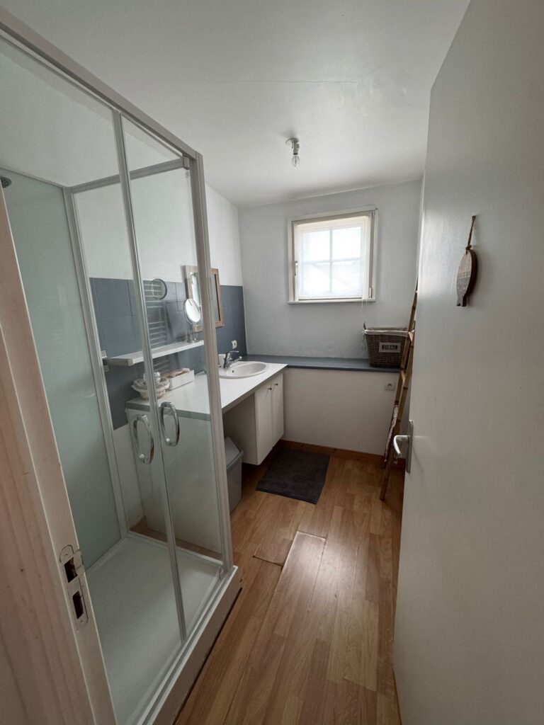 Au 1er étage il y a la salle de douche avec lavabo et un wc indépendant. Il y a également un salon qui communique avec la chambre du 2ème étage avec télévision et jeux de société.