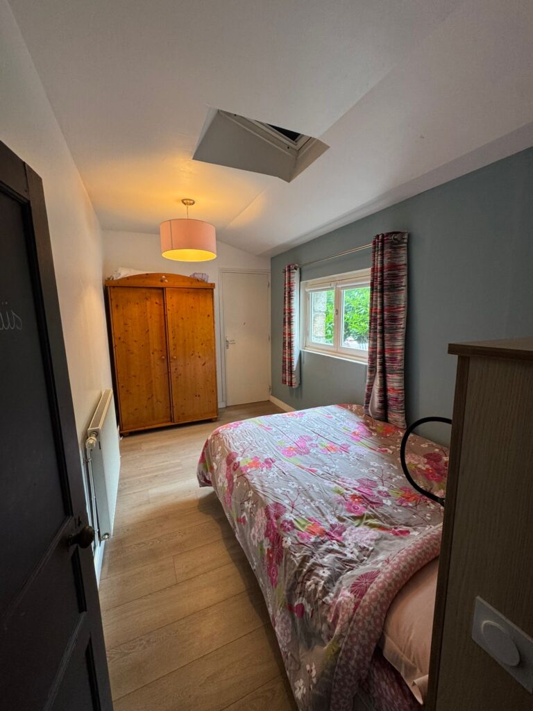 Il y a 2 chambres en enfilade au rez de chaussée avec lits de 140×200, une chambre au 1er étage avec lit 160×200 et une autre chambre au 2ème étage avec lit de 160×200.